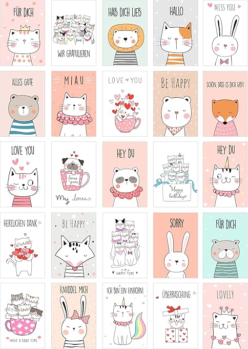 Edition Seidel Set Di 25 Cartoline Con Animali Carini Con Scritte Biglietti Con Scritta Cartolina Di Compleanno 20557 Amazon It Cancelleria E Prodotti Per Ufficio