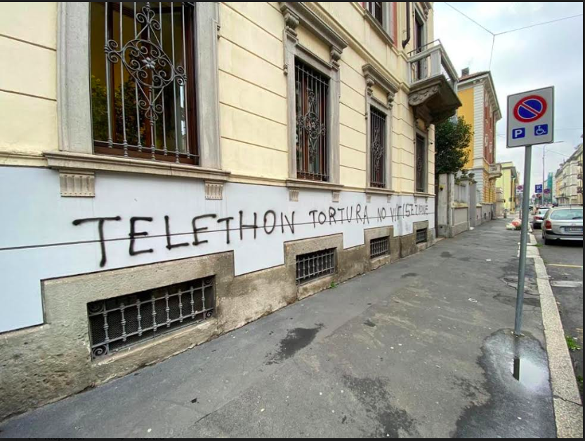 Deturpata La Sede Di Telethon A Milano Con Scritte Contro La Sperimentazione Animale No Vivisezione Open