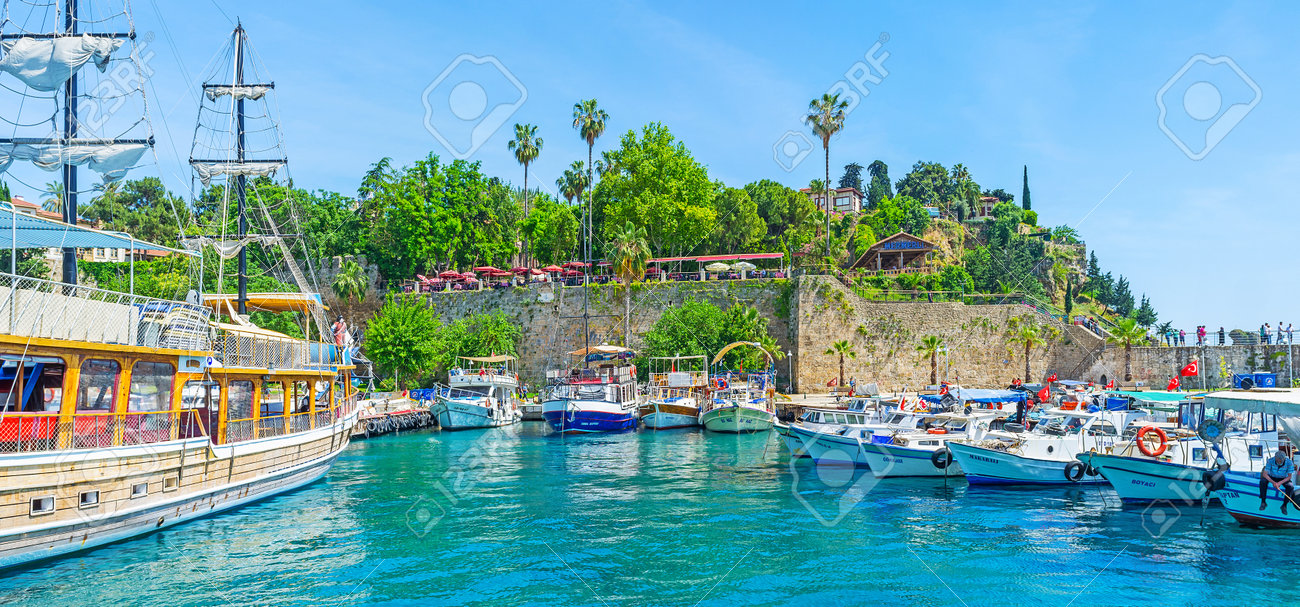 Immagini Stock Antalya Turchia 12 Maggio 2017 Il Porto Storico Della Localita Di Soggiorno Popolare Di Riviera Turco Pescherecci E Attraccato Alla Riva Il 12 Maggio A Adalia Image 89296560