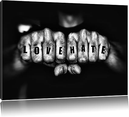 Pixxprint Amore Odio Pugni Stampa Su Tela 120x80 Cm Artistica Murale Amazon It Casa E Cucina