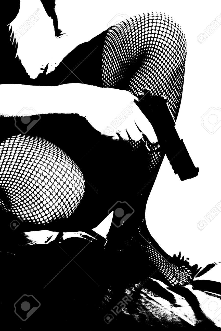 Immagini Stock Una Foto In Bianco E Nero Di Gambe Di Una Donna E Lei E In Possesso Alla Sua Pistola Image 35765981