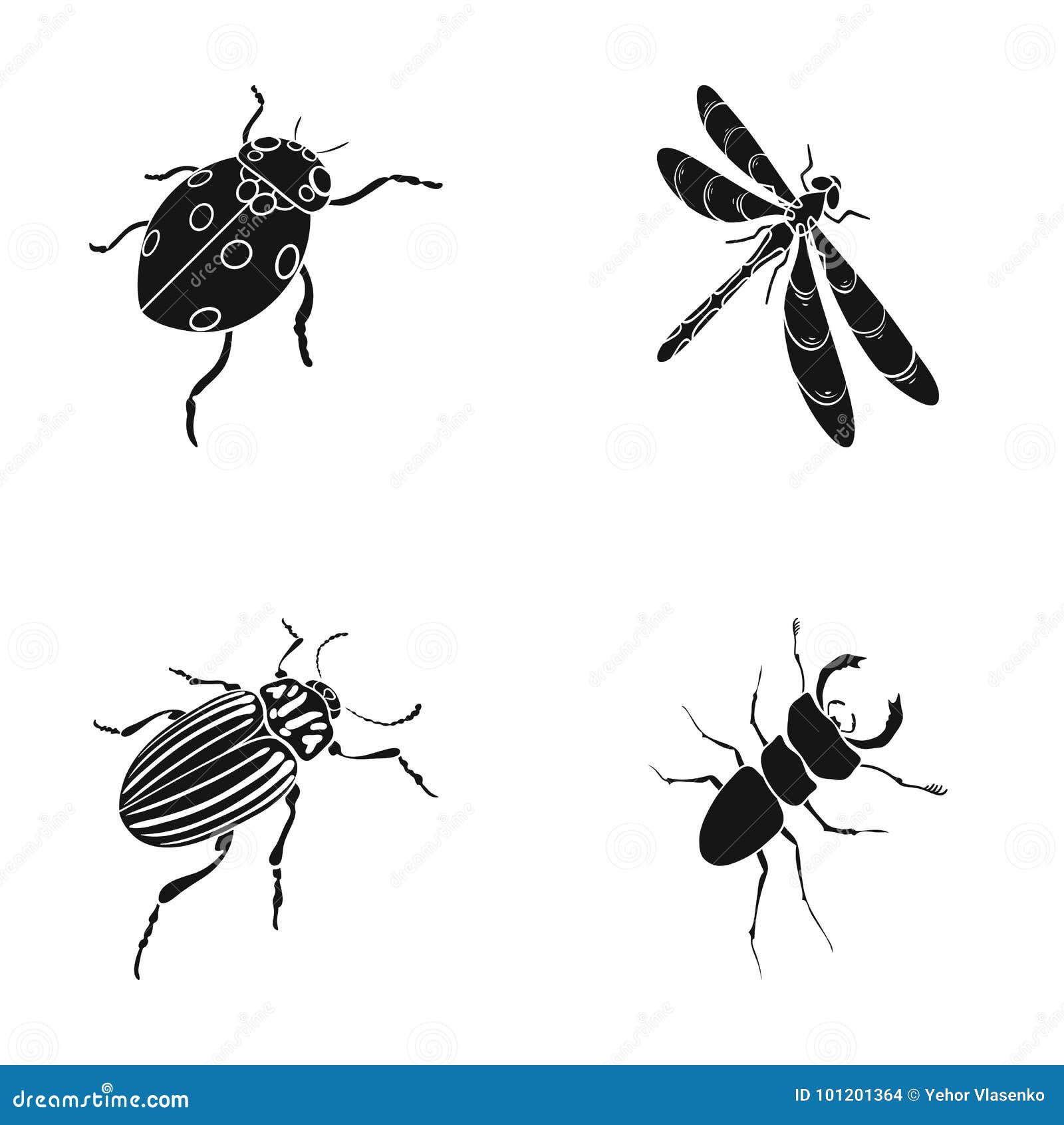 La Coccinella Dell Insetto Degli Artropodi La Libellula Lo Scarabeo Insetti Della Dorifora Ha Messo Le Icone Della Raccolta Ne Illustrazione Vettoriale Illustrazione Di Nero Scarabeo 113559893