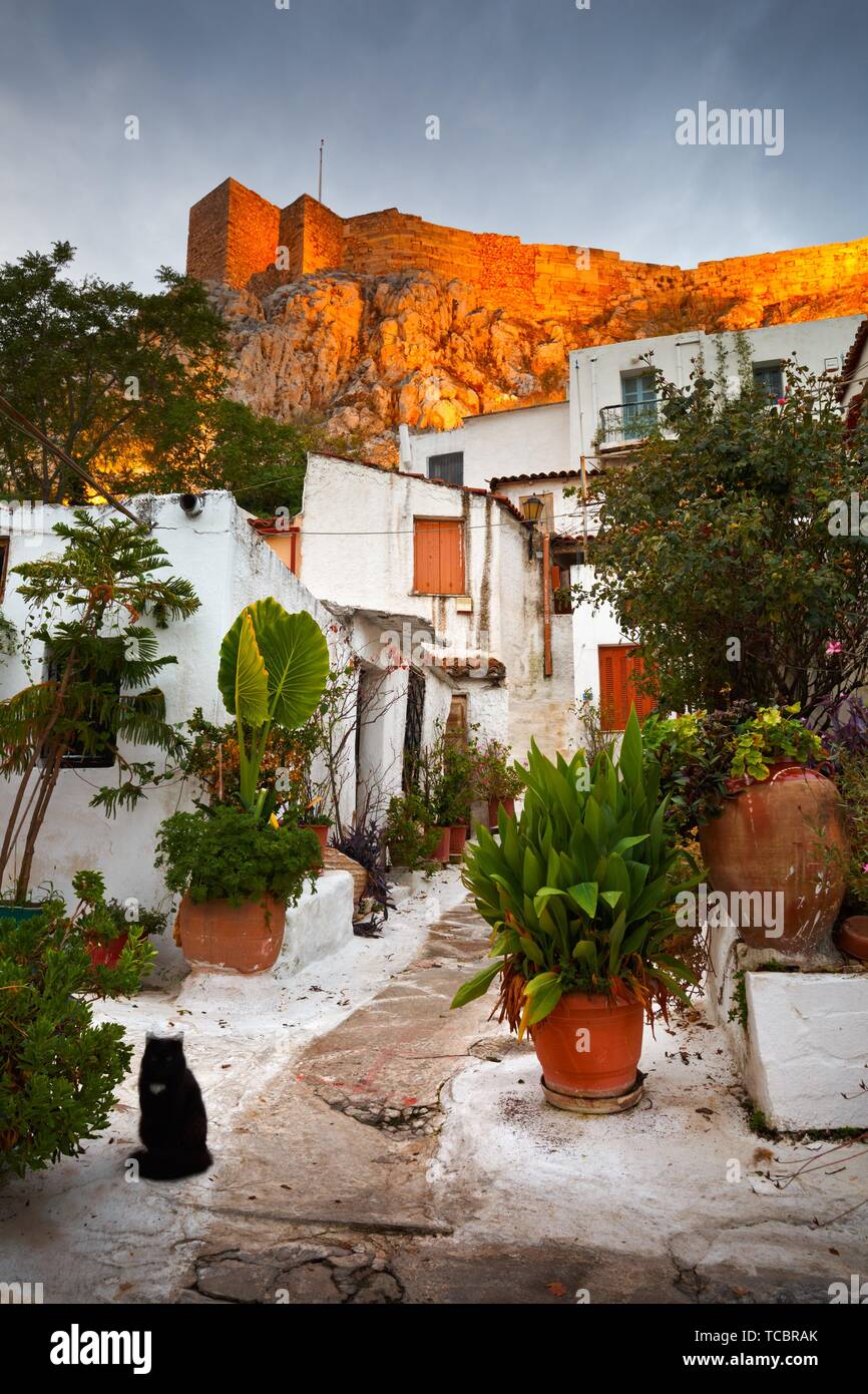 Acropoli Come Si Vede Dalle Strade Di Anafiotika Atene Grecia Foto Stock Alamy