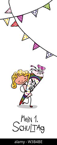 Primo Giorno Di Scuola Parte Scuola Colorati Coni Con Handlettering Mein Erster Schultag Disegnato A Mano Illustrazione Vettoriale Per Biglietto Di Auguri Design Immagine E Vettoriale Alamy