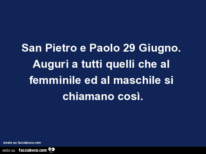 San Pietro E Paolo 29 Giugno Auguri A Tutti Quelli Che Al Femminile Ed Al Maschile Facciabuco Com