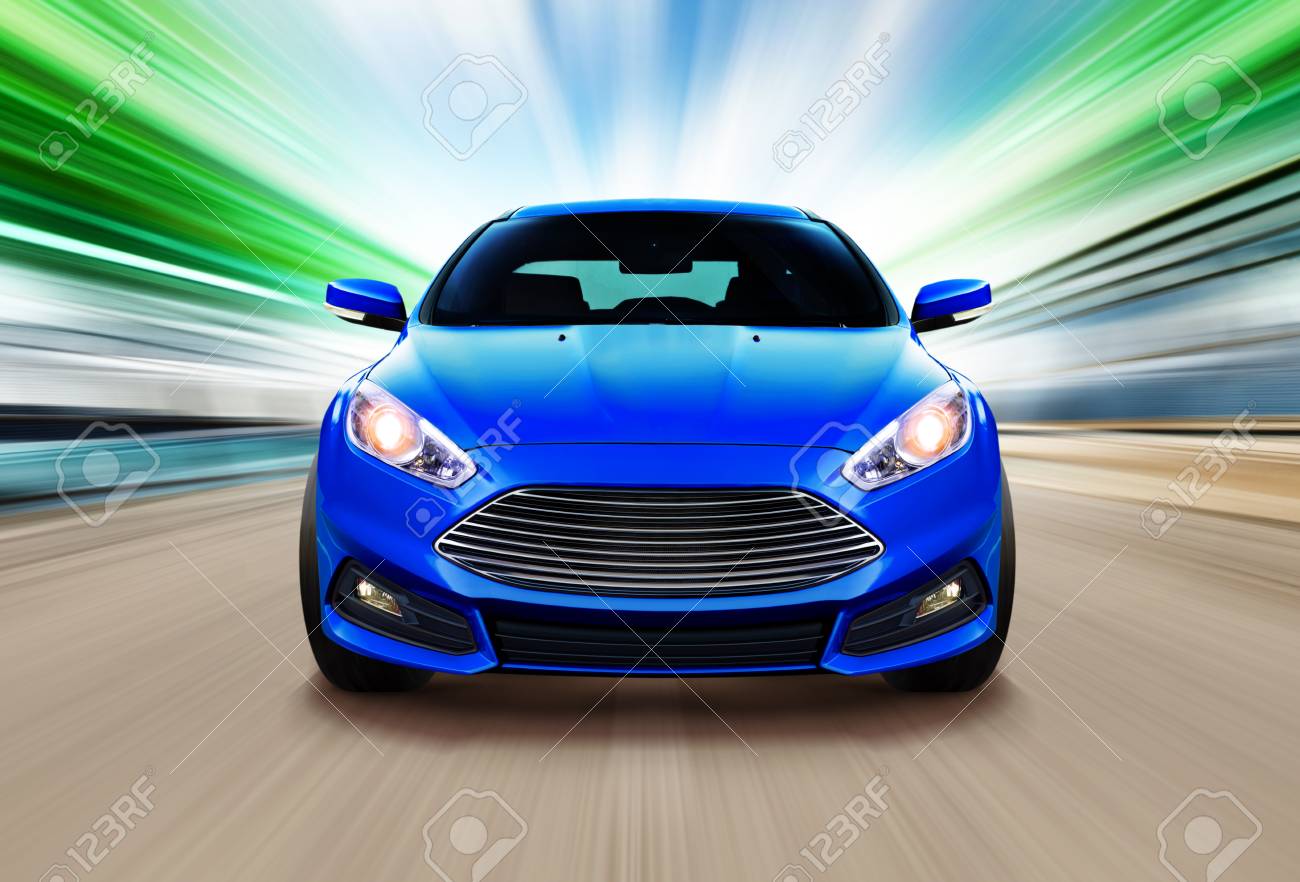 Immagini Stock Auto Da Corsa Sportiva Blu Sulla Pista Di Velocita Sfocatura Di Movimento Image 64135076