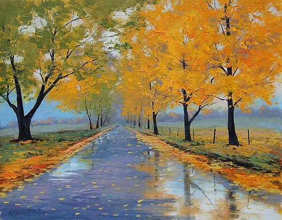 Arancia Autunno Del Colorato Di Paesaggio Di Pittura A Olio Etsy