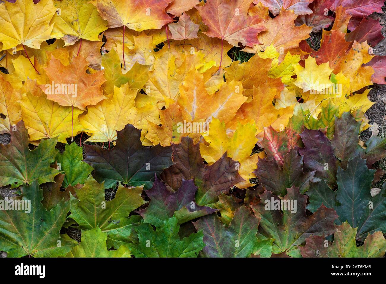 Gradiente Di Foglie Autunnali Di Colori Brillanti Toni Rossi Gialli E Verdi Colori Luminosi In Natura La Bellezza Dell Autunno Sfondo Per Illustrazione M Foto Stock Alamy