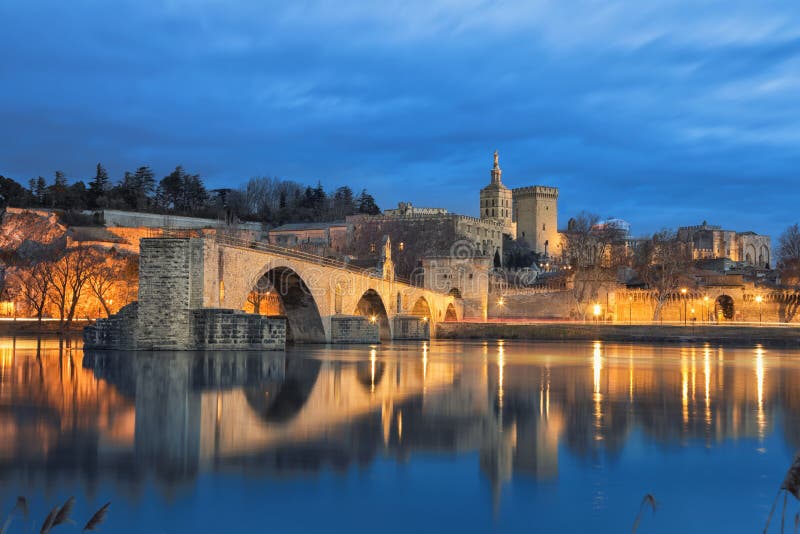 Vecchio Orizzonte Della Citta E Del Ponte Al Crepuscolo A Avignone Francia Immagine Stock Immagine Di Notte Avignon 108834809