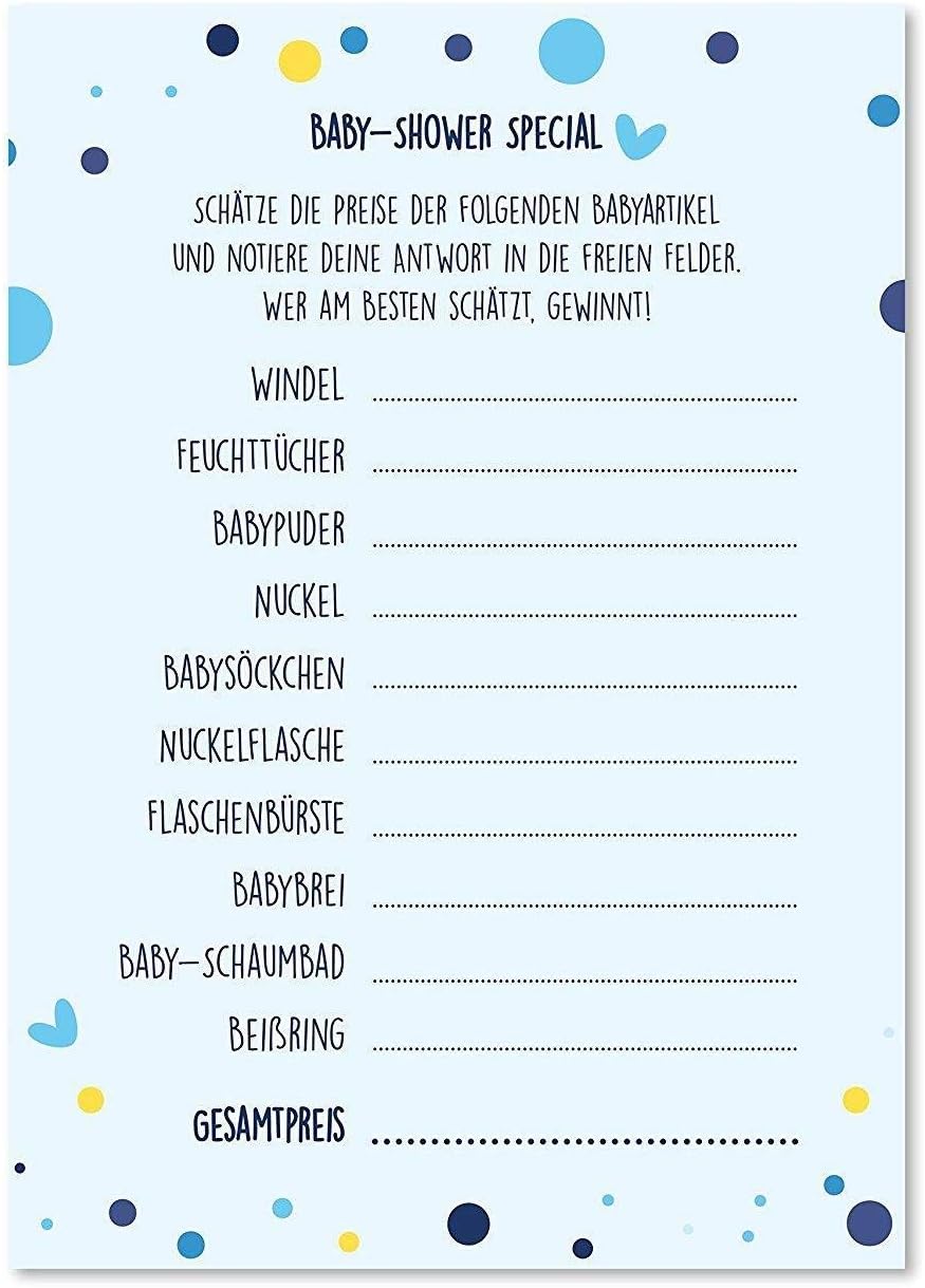 15 Carte Da Gioco Per La Baby Shower Dv 161 Formato Din A6 Colore Blu Per Bambino Amazon It Auto E Moto