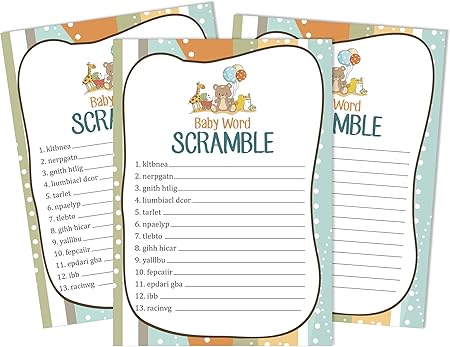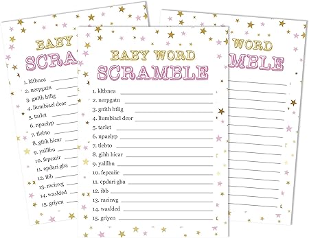 Inkdotpot 50 Pack Carte Bambino Parola Scramble Baby Shower Gioco Coriandoli Stelle Di Genere Neutro Favori Per Feste Fun Baby Shower Gioco Amazon It Casa E Cucina