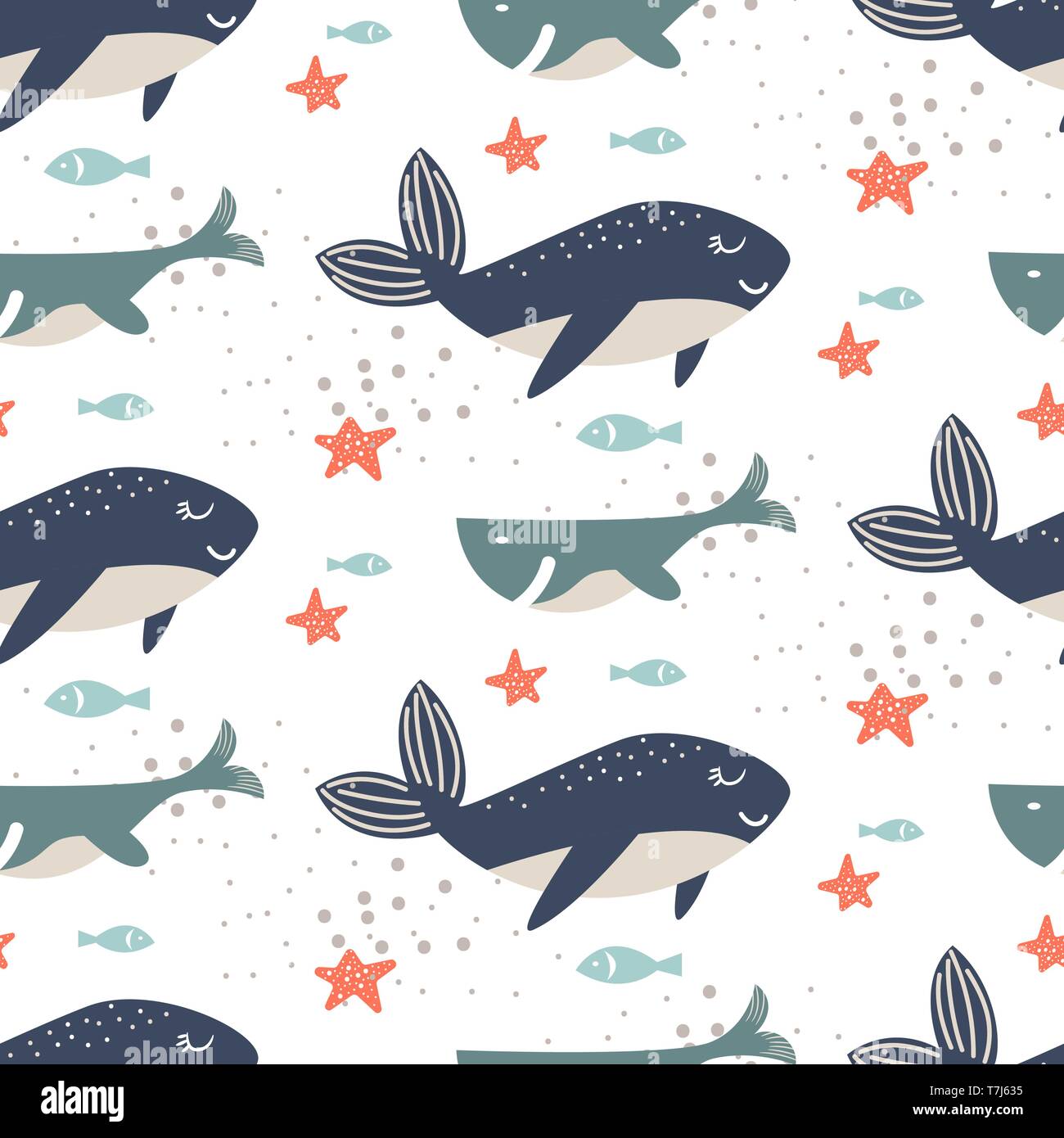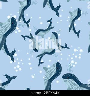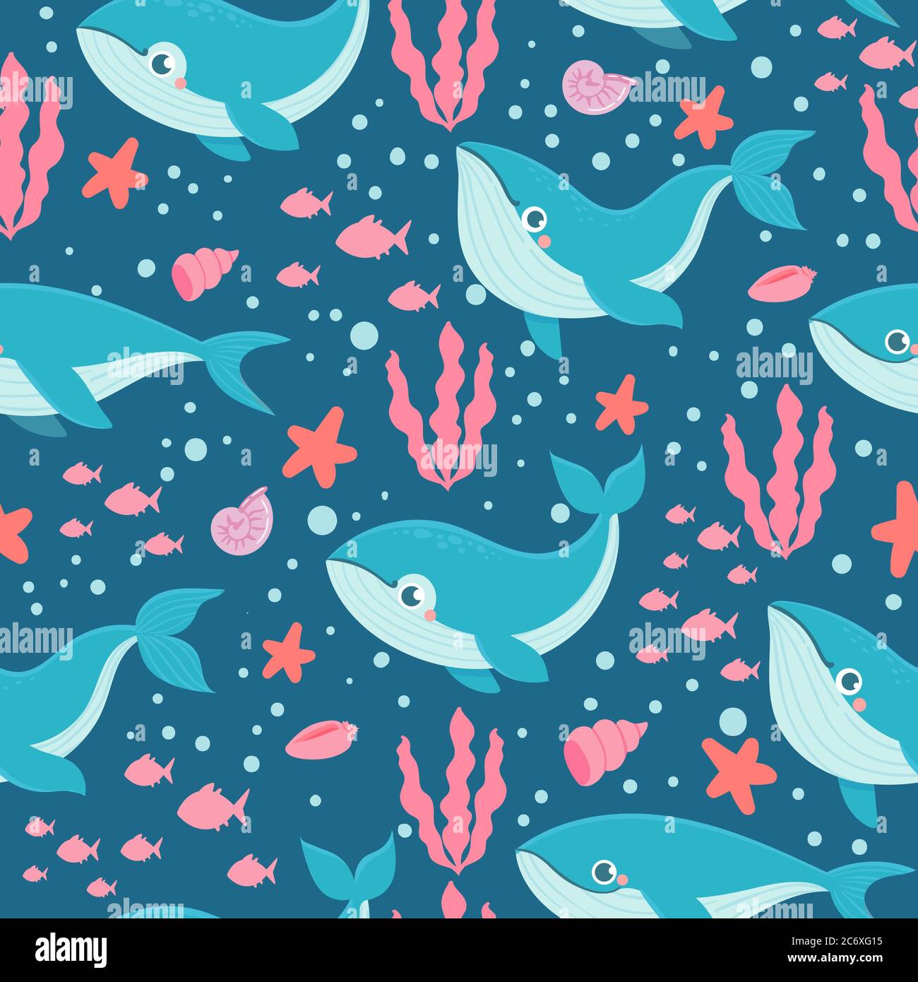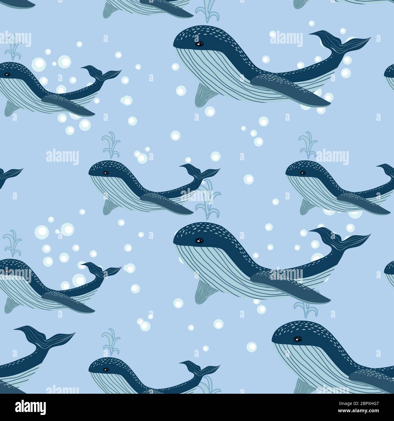 Balena Vettore Seamless Pattern In Stile Cartone Animato Divertente Blu Sullo Sfondo Di Pesce Immagine E Vettoriale Alamy