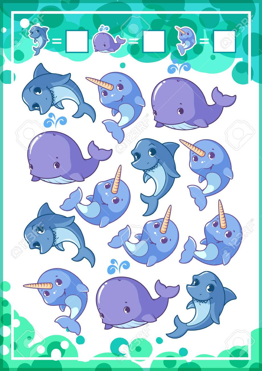 Vettoriale Istruzione Gioco Di Conteggio Per I Bambini In Eta Prescolare Con Animali Divertenti Quanti Squali Balene E Narvali Cosa Vedi Illustrazione Vettoriale Cartone Animato Image 56939061