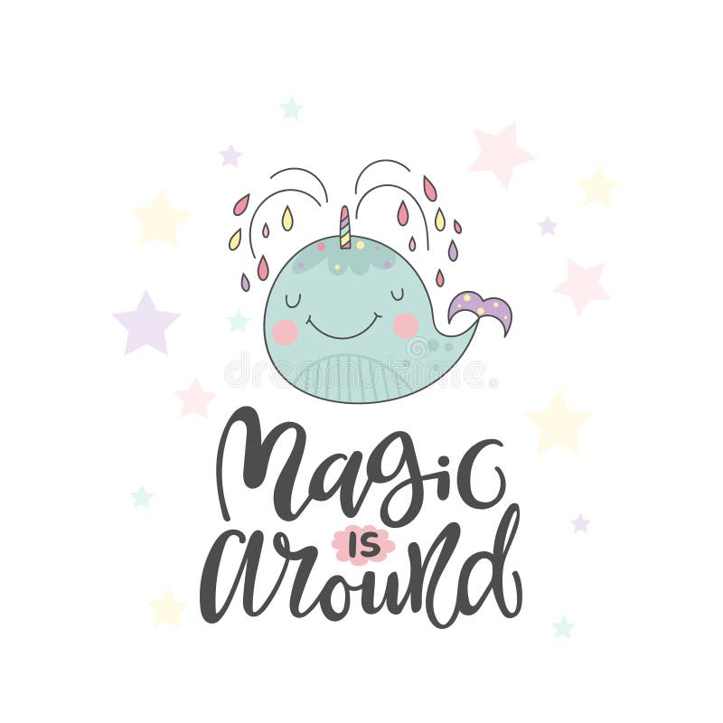 Balena Ed Iscrizione Divertenti Circa La Magia Illustrazione Vettoriale Illustrazione Di Camicia Fantasia 116488533