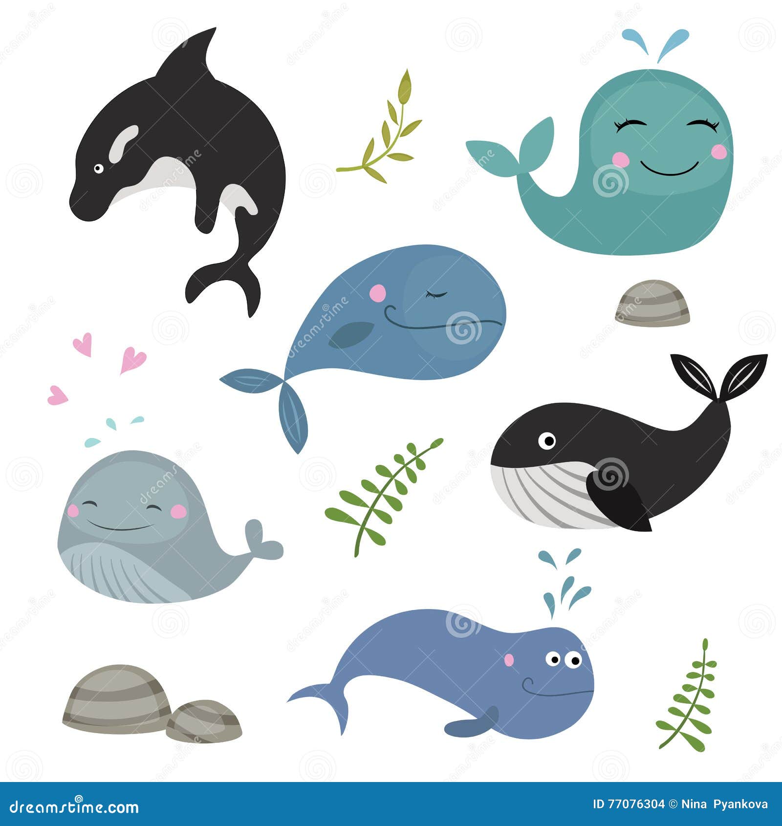 Insieme Delle Balene Sveglie E Divertenti Del Fumetto Illustrazione Vettoriale Illustrazione Di Mare Insieme 96622059