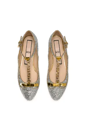 Chain Glitter Ballerina Pumps In Grey N 21 Official Online Store