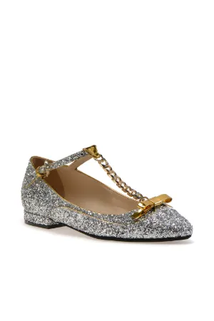 Ballerine Glitter Con Fiocco E Catena Grigio N 21 Online Store Ufficiale