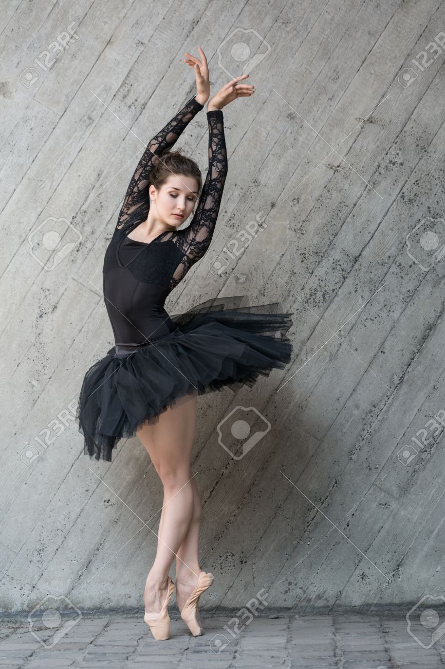 Immagini Stock Bella Ballerina In Piedi Sulle Punte Con Le Mani Tese In Alto Si Vesti In Abito Da Ballo Nera Con Tutu Nero Crescita Foto Completa All Aperto Verticale Image 52004651