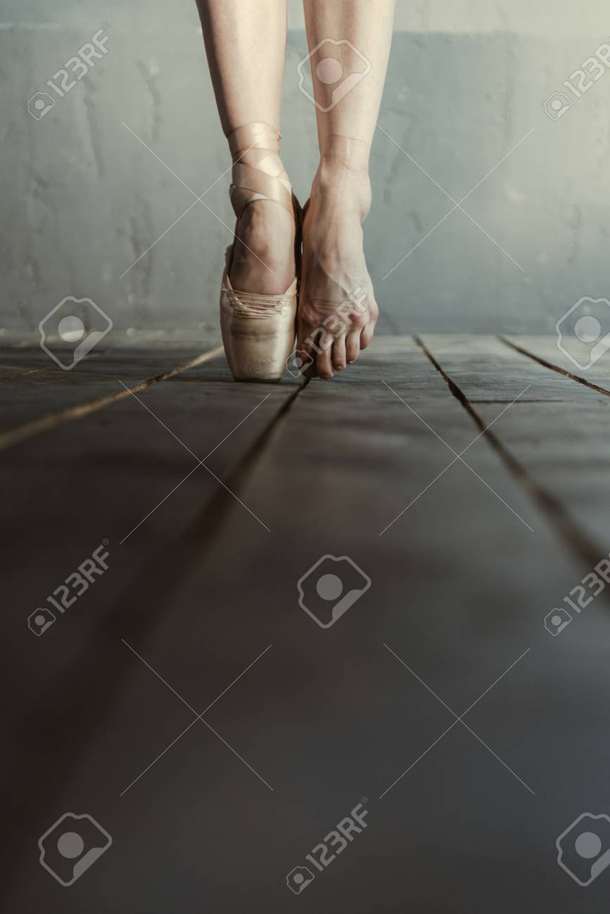 Le Gambe Di Una Ballerina O Ballerina In Piedi En Pointe Nelle Sue Scarpe Da Ballo Equilibrato Sulle Punte Delle Sue Dita Con Copyspace Foto Stock Alamy