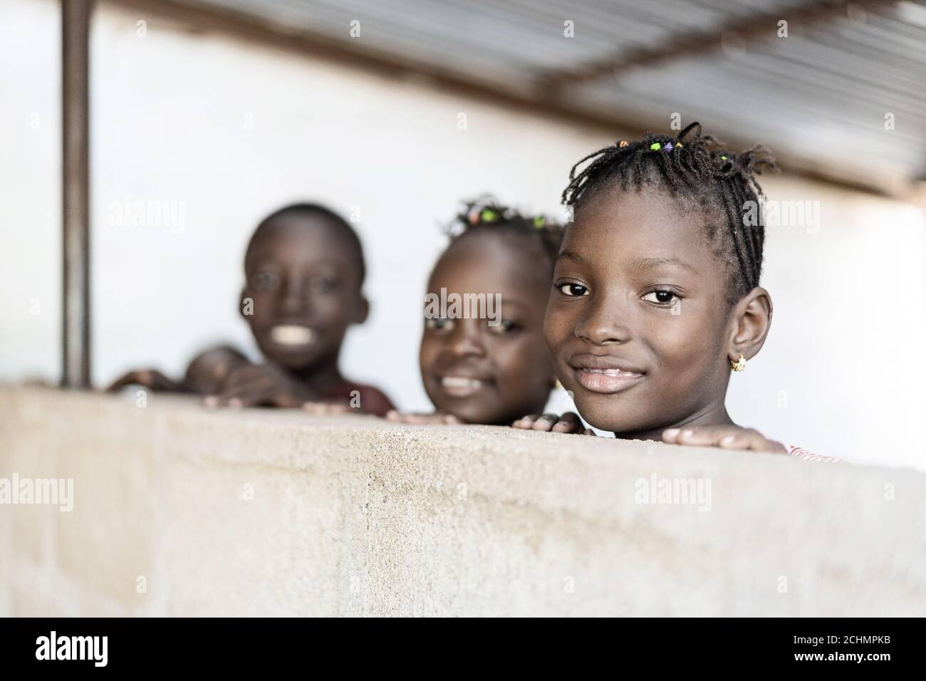 Candida Ritratto Di Tre Meravigliosi Bambini Africani Sorridenti Afflatori E Godendo Di Foto Foto Stock Alamy
