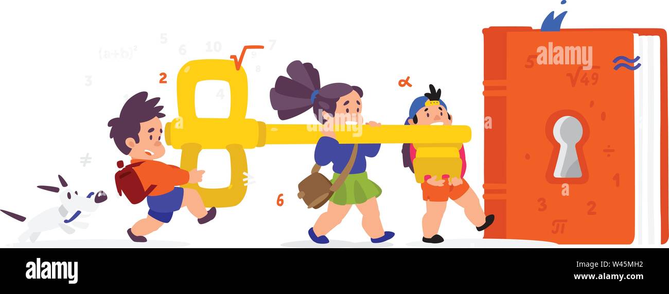 Illustrazione Di Cartoon Bambini Con Una Chiave E Un Libro I Bambini E La Matematica Simpatici Personaggi Dei Cartoni Animati I Ragazzi Aprire Il Libro Vettore Illust Piatta Immagine E Vettoriale