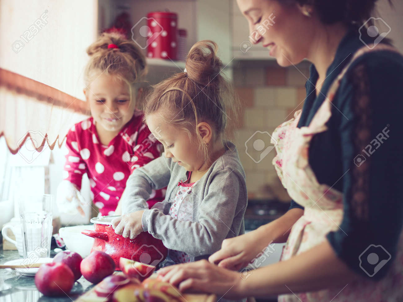 Madre Con Bambini Cucina In Cucina Al Chiuso Dare Stock Photo 143149227