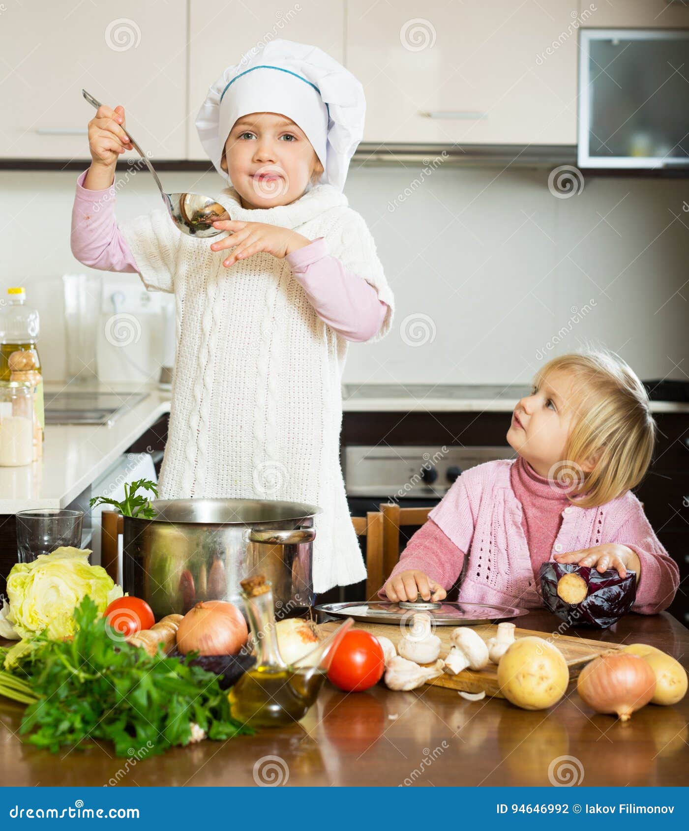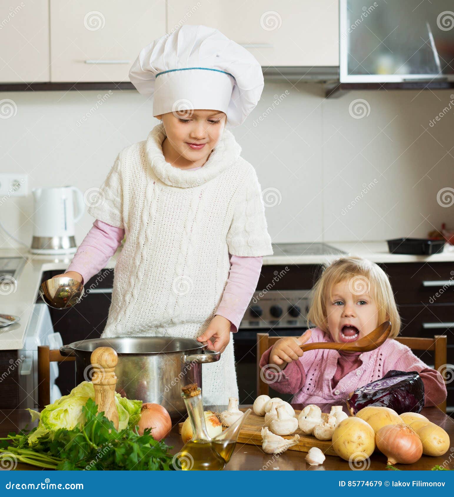 Bambini Che Cucinano Nella Cucina Fotografia Stock Immagine Di Gioco Amicizia 78193304