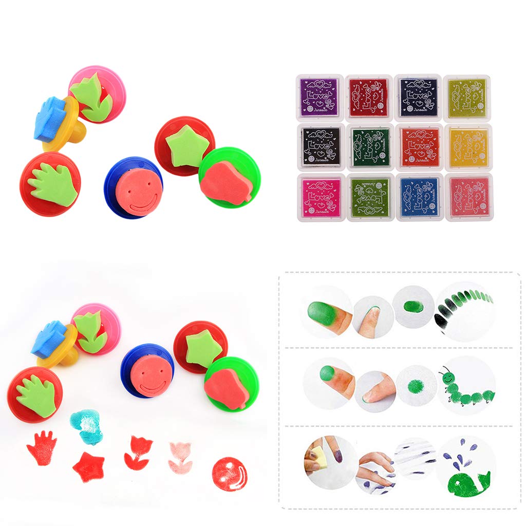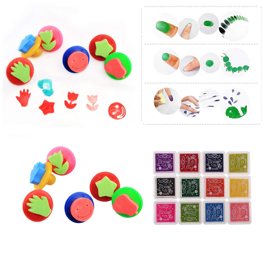 P Prettyia 6 Stili Di Timbri Di Gommapiuma E 12 Timbri A Inchiostro Colorati Per Bambini Che Dipingono Mestieri Pennelli Giochi E Giocattoli