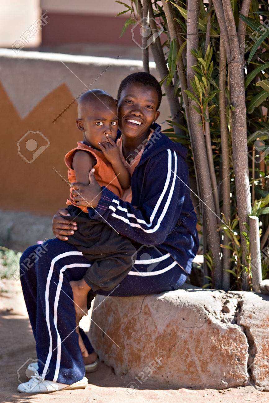 Immagini Stock Volto Della Poverta Nel Terzo Mondo La Madre Con Il Bambino In Sole Duro Del Deserto Del Kalahari Questioni Sociali Serie Image 2113238