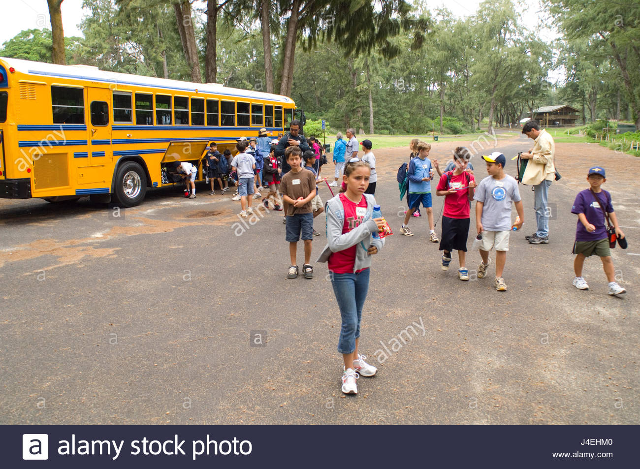 La Scuola Dei Bambini In Gita Che Esce Da Un Bus Di Scuola Foto Stock Alamy