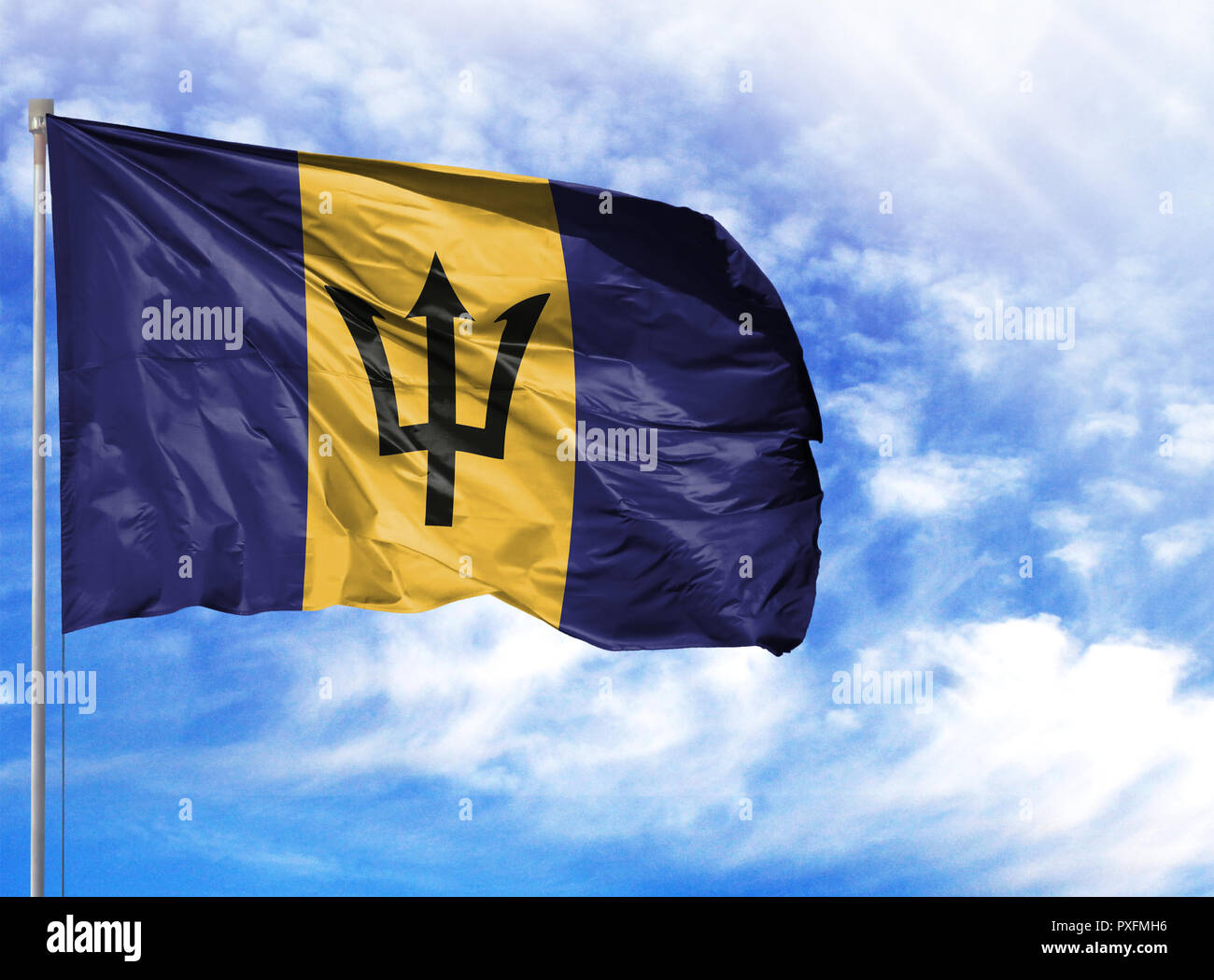 La Bandiera Nazionale Di Barbados Sul Pennone Sventolare Nel Vento Cielo Blu Sullo Sfondo Simbolo Patriottico Banner Elemento Dello Sfondo Nome Il Tr Rotto Foto Stock Alamy