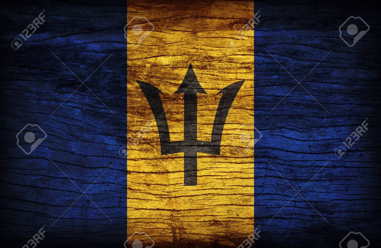 Bandiera Nazionale Delle Barbados Di Paese Bandiera Delle Barbados Sull Esposizione Un Effetto Di Marezzatura Digitale Fotografia Stock Immagine Di Barbados Esposizione 150488570