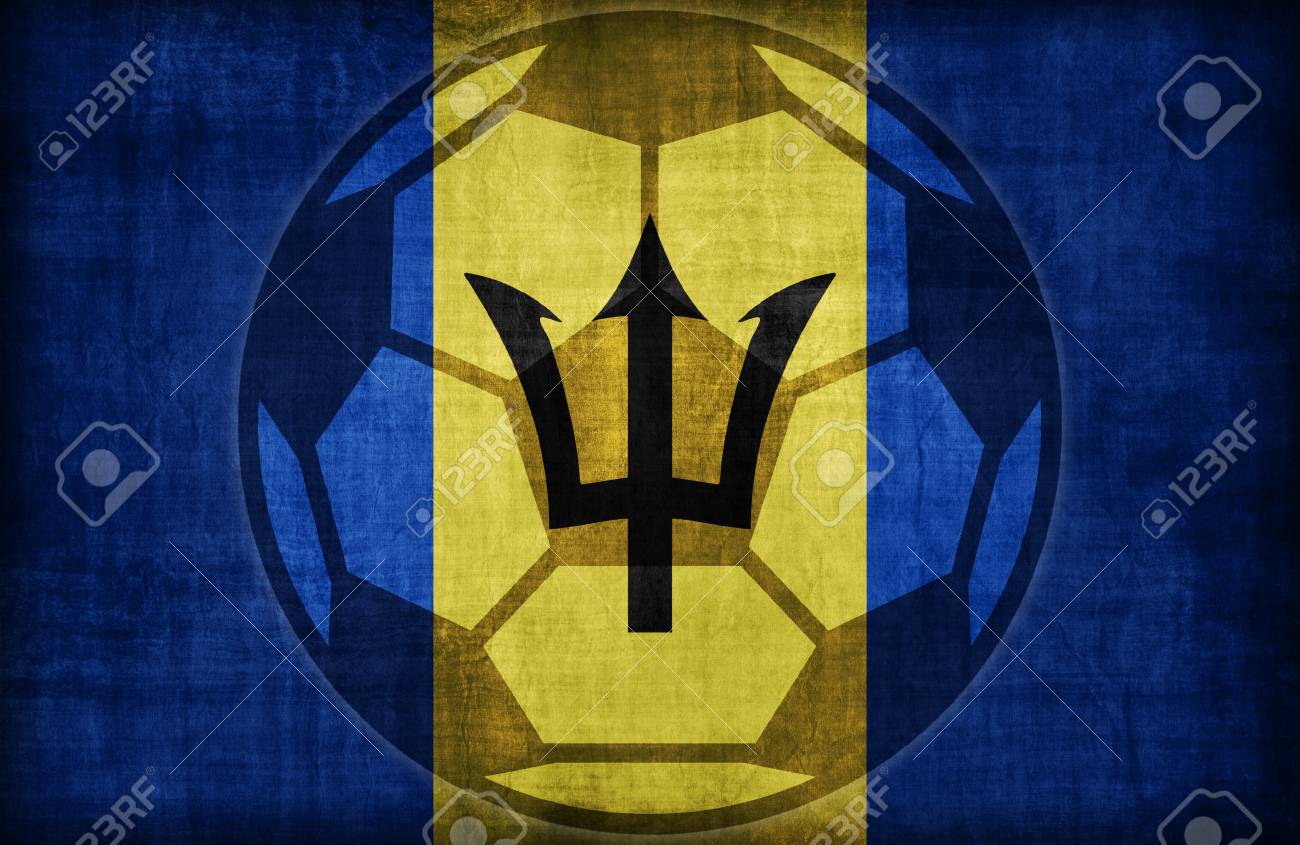 Immagini Stock Simbolo Di Calcio Sul Modello Di Bandiera Di Barbados Stile Vintage Retro Image 53719237