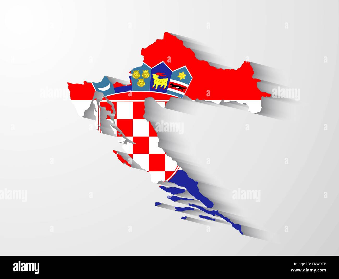 Croazia Mappa Del Paese Con La Bandiera E Effetto Ombra Immagine E Vettoriale Alamy