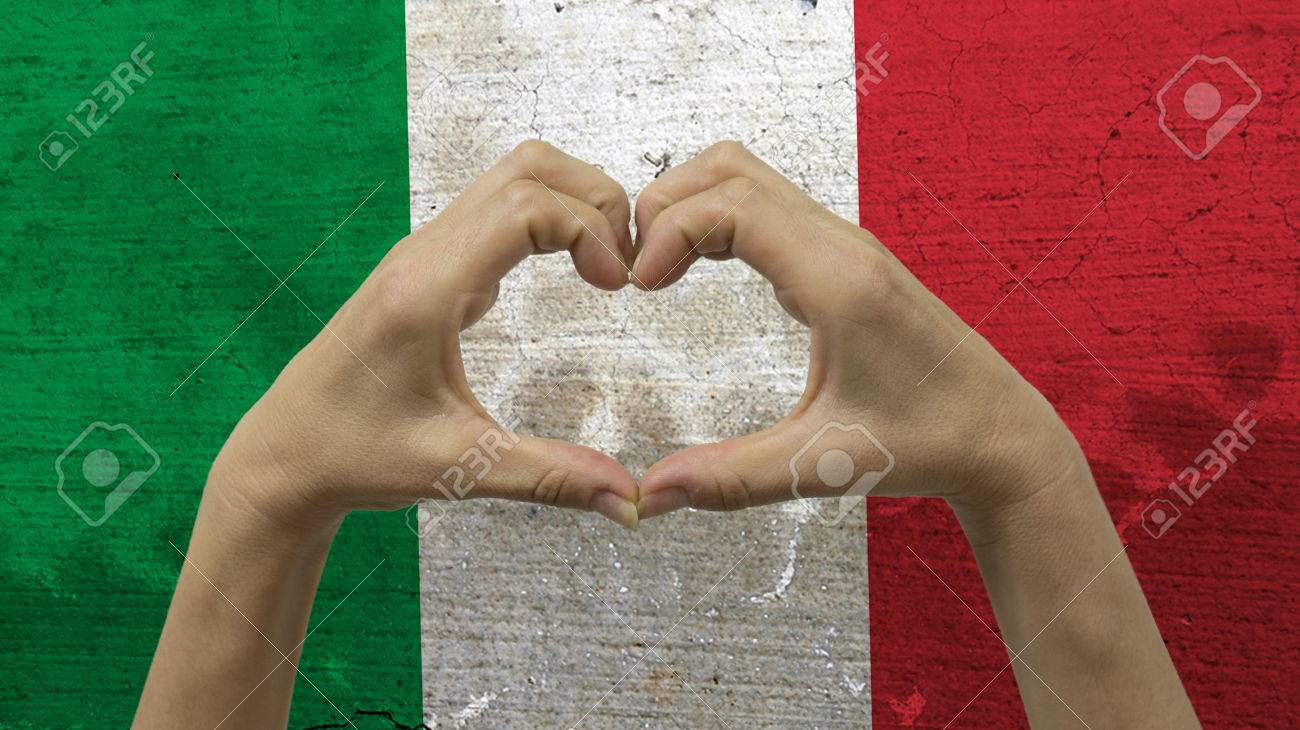 Immagini Stock Con Una Stilizzata Sfondo Di Bandiera Italiana Mani Di Una Persona Anonima Che Si Terra In Forma Di Un Cuore Simbolo Di Amore E Di Patriottismo Per L Italia Image