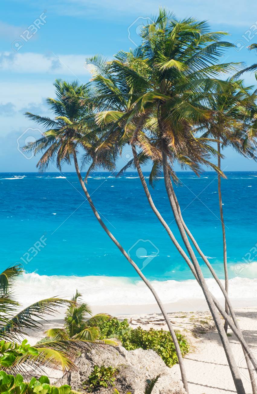 Immagini Stock Bottom Bay E Una Delle Piu Belle Spiagge Dell Isola Caraibica Di Barbados E Un Paradiso Tropicale Con Palme Appeso Sopra Il Mare Turchese Ampia Foto Panoramica Verticale Image 33131489