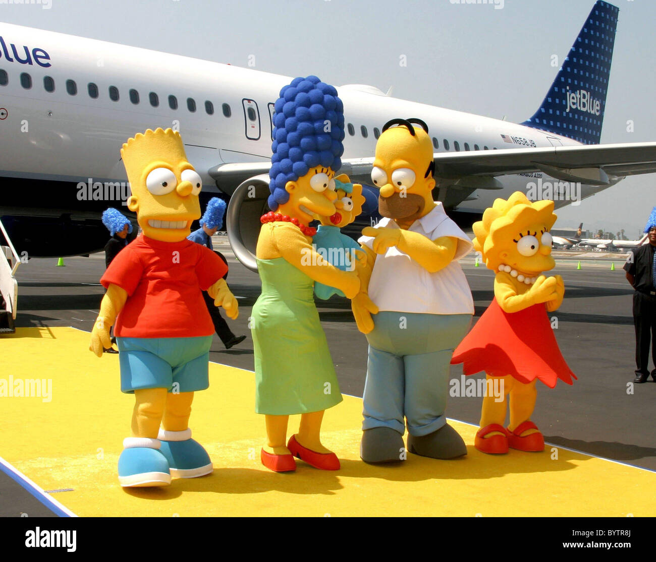 Bart Marge Maggie Homer E Lisa Simpson Jet Blue Svela L Aeromobile In Celebrazione Del The Simpsons Film Il Rilascio A Foto Stock Alamy