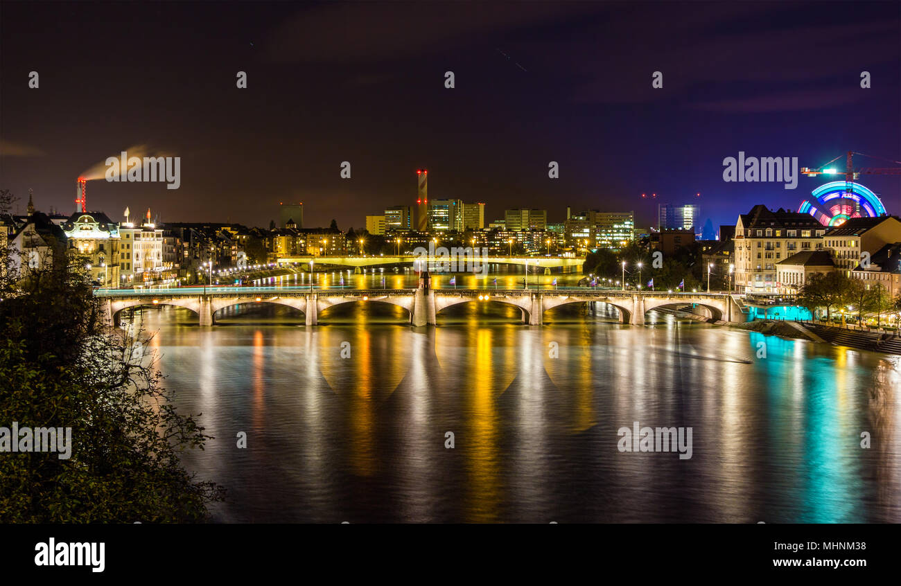 Basilea Svizzera Di Notte Vista Dal Ponte Di Mezzo Per Gli Edifici Storici Foto Stock Alamy