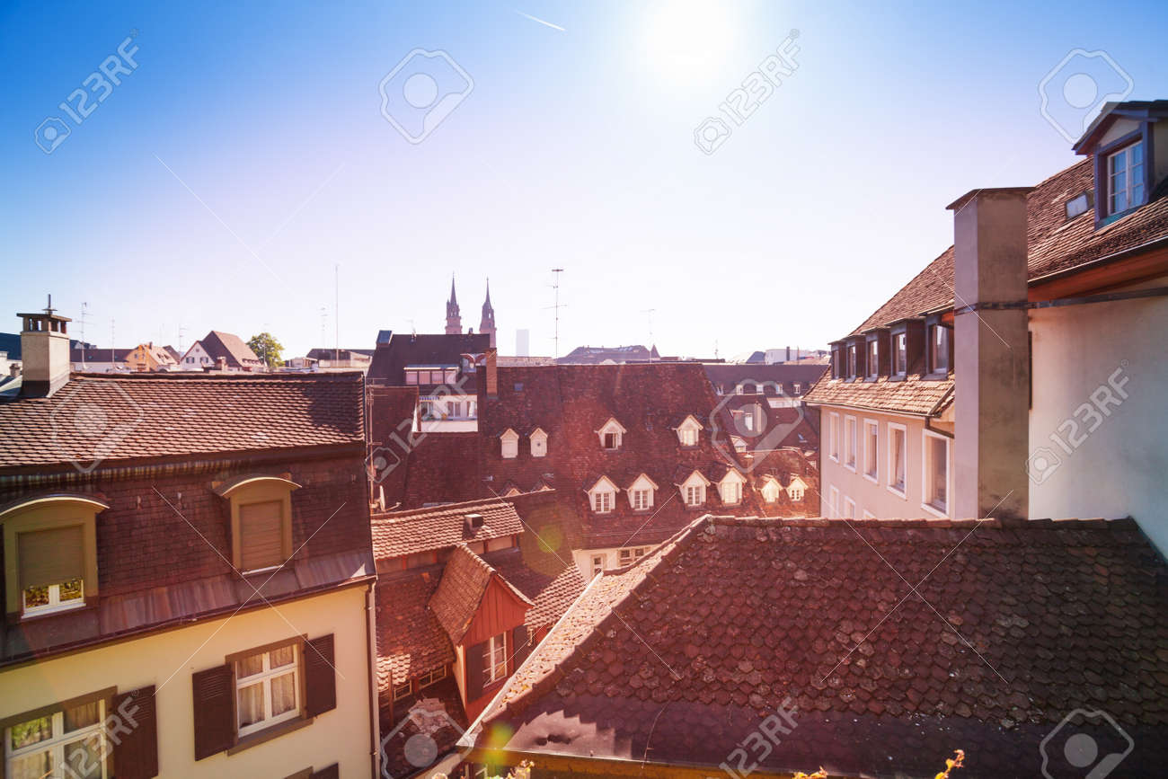 Immagini Stock Vista Dall Alto Dei Tetti Della Citta Vecchia Basilea Svizzera Image 91665922