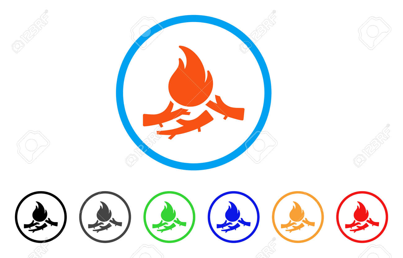 Bastard Campfire Icono Redondeado El Estilo Es Un Simbolo Naranja De Fogata Plana Bastarda Dentro De Un Circulo Azul Claro Con Versiones Negras Grises Verdes Azules Rojas Naranjas Ilustraciones Vectoriales Clip Art