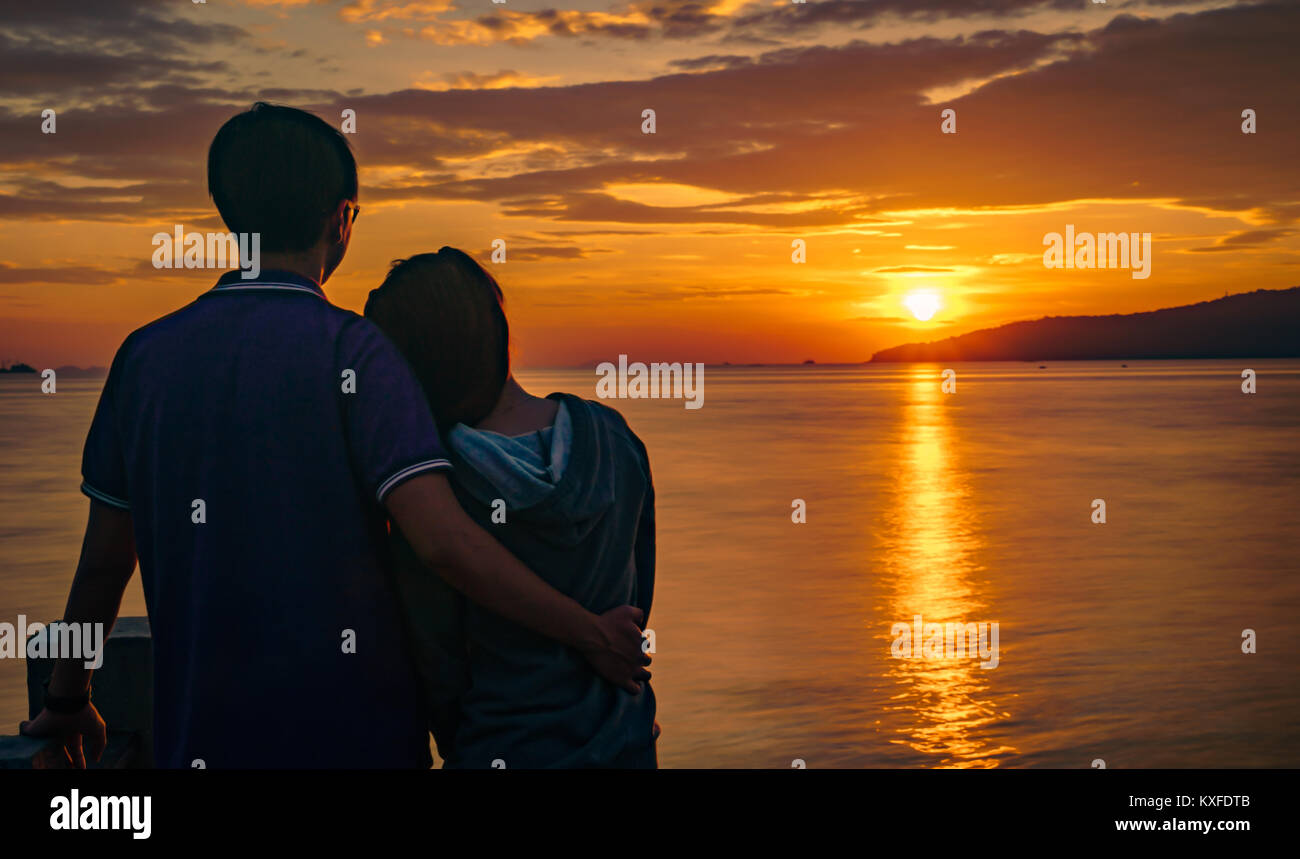 Silhouette Di Attraente Giovane Coppia Romantica In Amore E Costeggiata Sulla Spiaggia Al Tramonto Con Belle Golden Sky Vacanze E Viaggi Concetto Roma Foto Stock Alamy