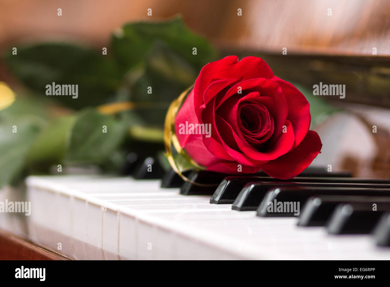 Red Bella Rosa Sulla Tastiera Di Pianoforte Musica Di Sottofondo Foto Stock Alamy