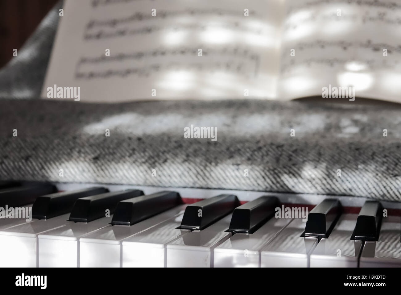Piu Belle Viste Dettagliate Dei Tasti Di Pianoforte E Note E Spartiti Musicali Con Lieve Gioco Di Sole E Ombre Creano Un Piacevole Ambiente E Atm Foto Stock Alamy