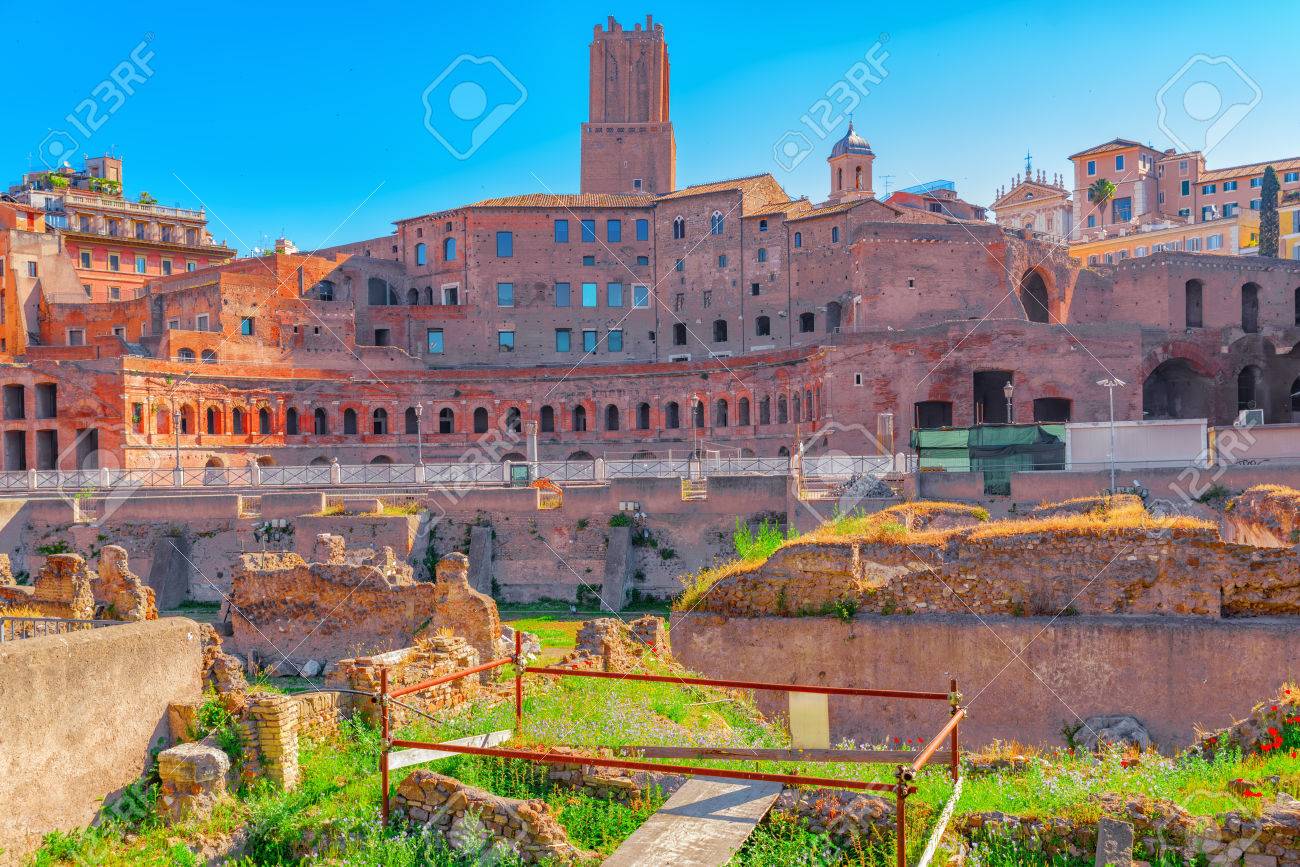 Immagini Stock Paesaggio Di Roma Una Delle Piu Belle Citta Del Mondo Il Foro Di Traiano Foro Traiano La Casa Dei Cavalieri Di Rodi Casa Dei Cavalieri Di Rodi Image 83912399
