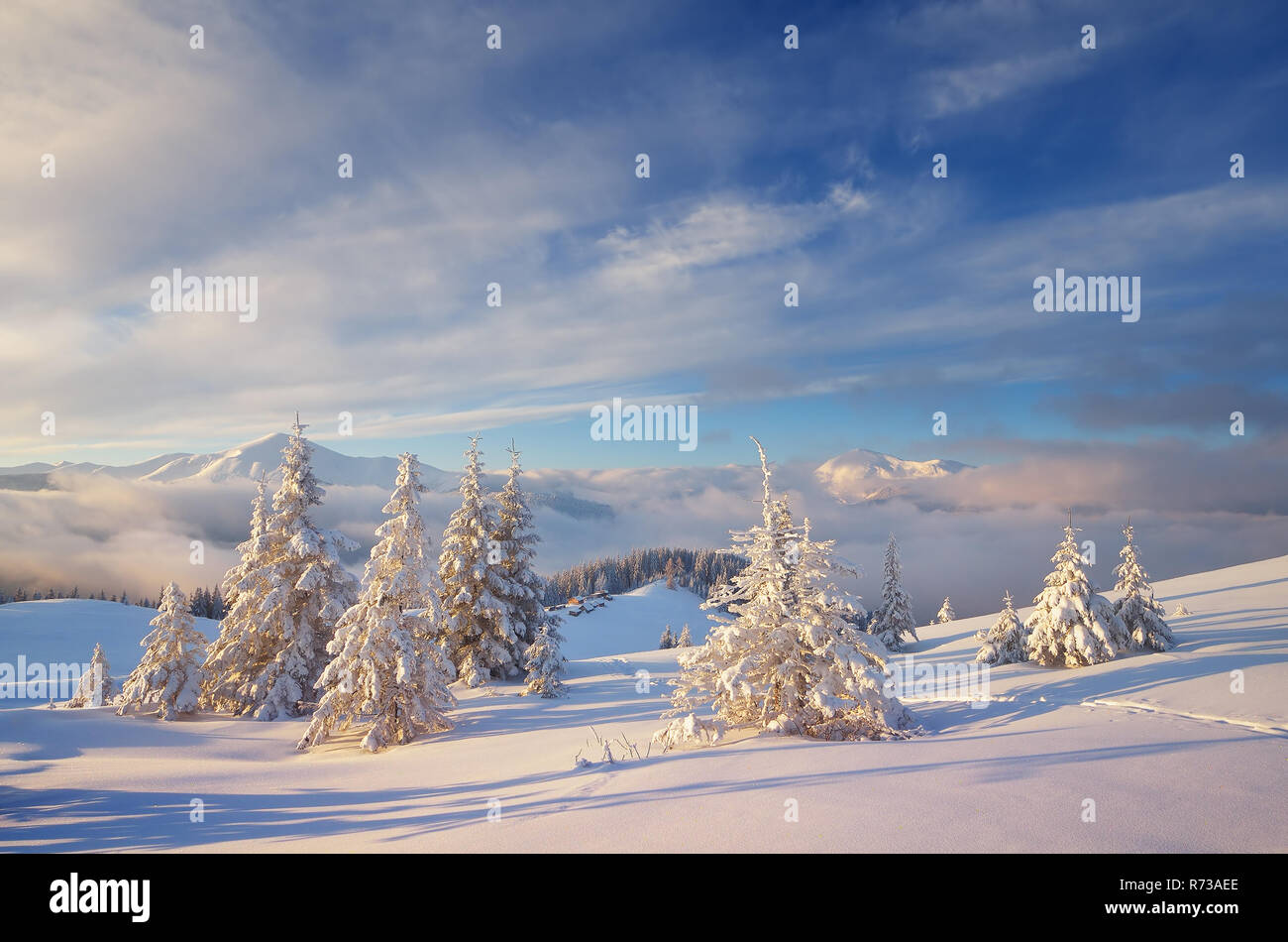 Favoloso Paesaggio Di Natale Abeti Sotto La Neve Belle Montagne Invernali Foto Stock Alamy