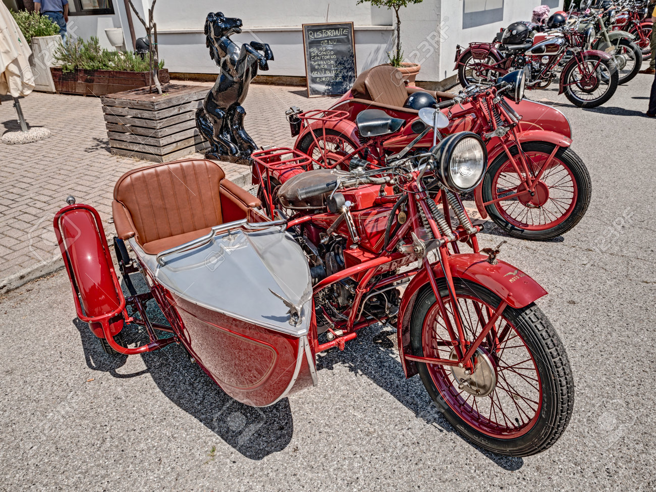 Vintage Italian Motorcycle Moto Guzzi With Sidecar Exposed At Stock Photo Picture And Royalty Free Image Image 29312708