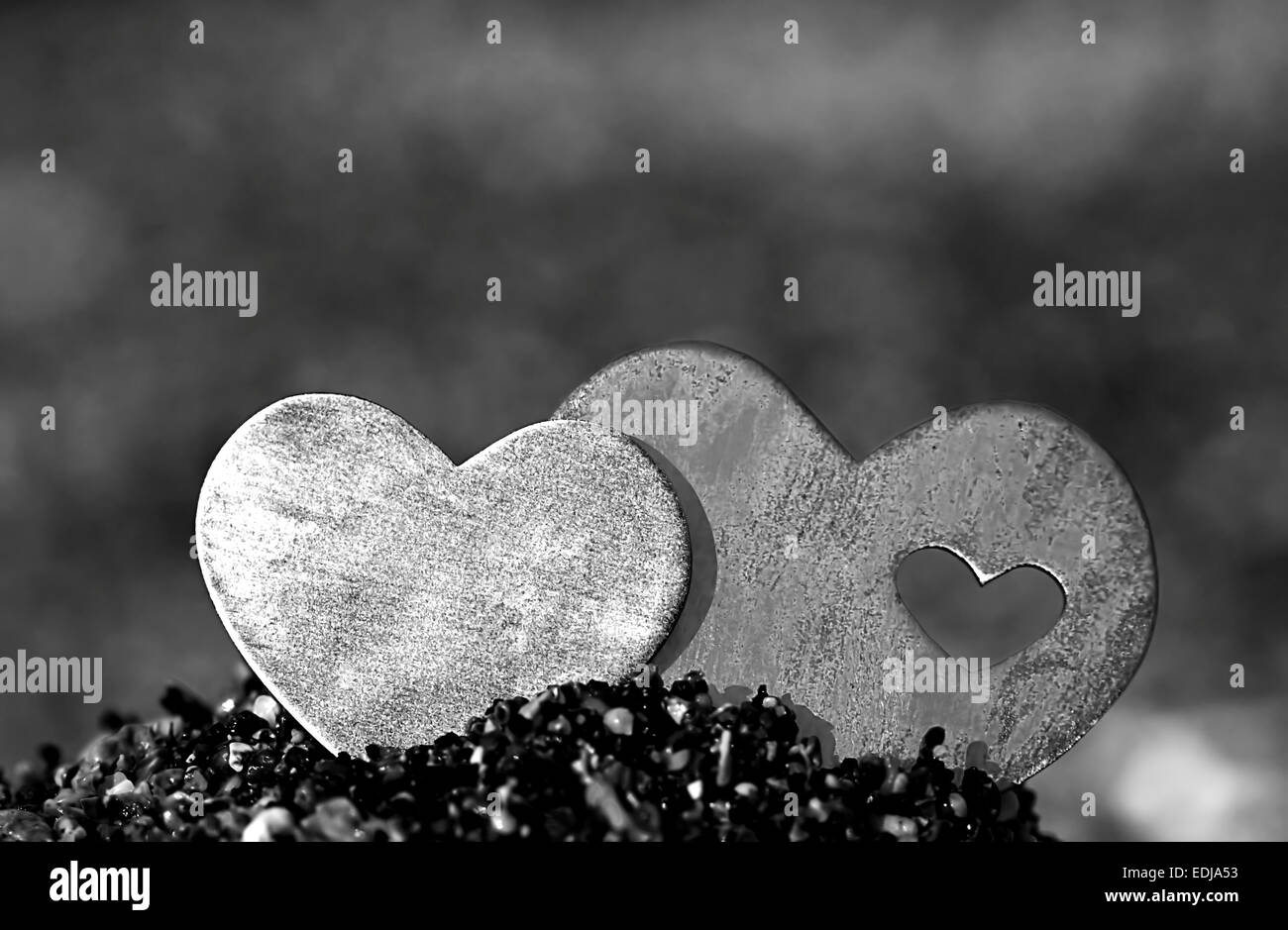 Due Luminose Bellissime Cuori Di Metallo Sono Collocati Su Una Roccia Luminose Di Sabbia Sul Fondo Orientamento Verticale Foto Stock Alamy