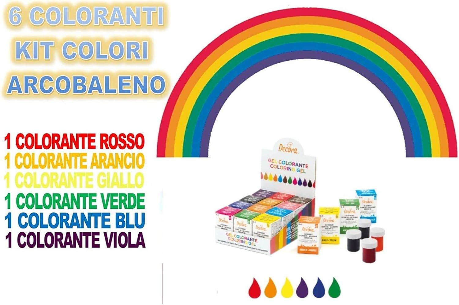 6 Coloranti Colori Arcobaleno Decora Kit Cdc Rosso Arancio Giallo Verde Blu Viola Amazon It Alimentari E Cura Della Casa
