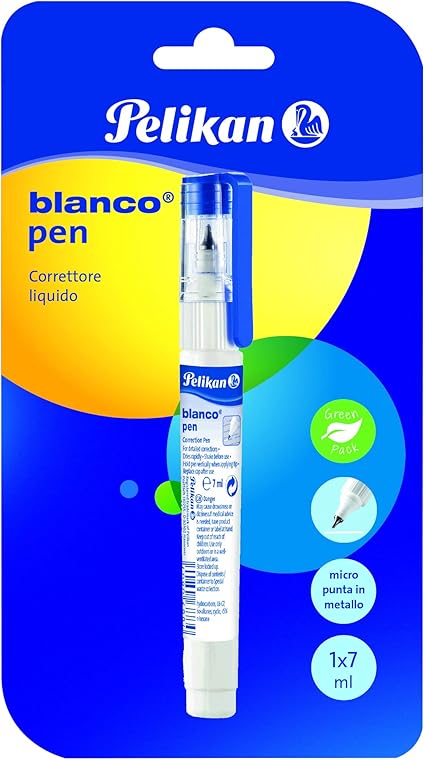 Pelikan 24005746 Correttore Liquido A Penna Blanco Pen 7 Ml Blister Da 1 Bianchetto Punta Fine In Metallo Base Solventi Kit Scuola Primaria E Medie Amazon It Cancelleria E Prodotti Per Ufficio