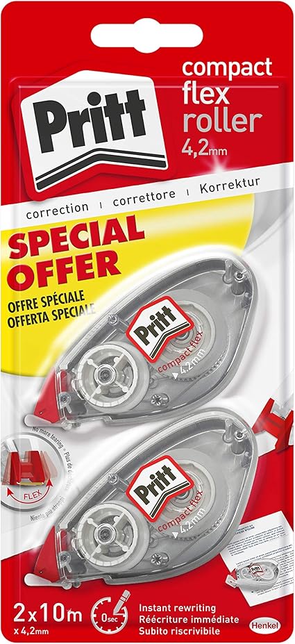 Pritt Flex Roller Bianchetto A Nastro Per Coprire Gli Errori Correttore A Nastro Riscrivibile Correttore Per Frasi E Lettere Singole Confezione Da 2 4 2mmx10m Amazon It Cancelleria E Prodotti Per Ufficio